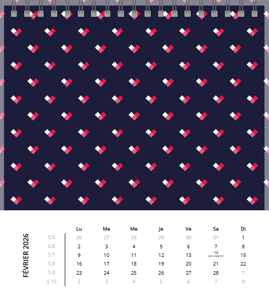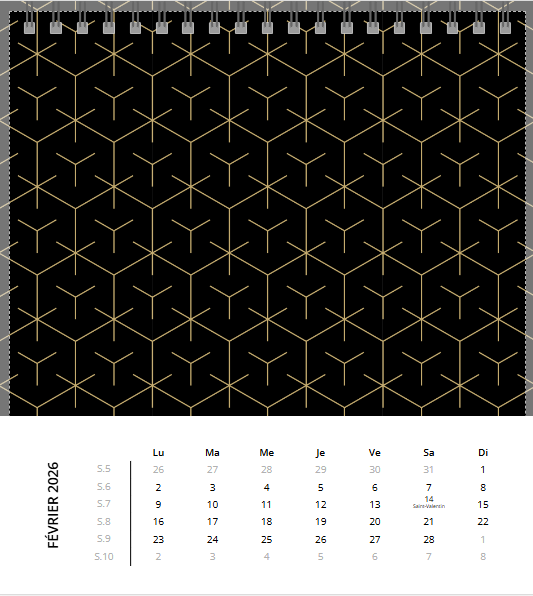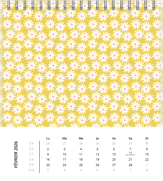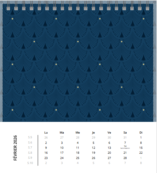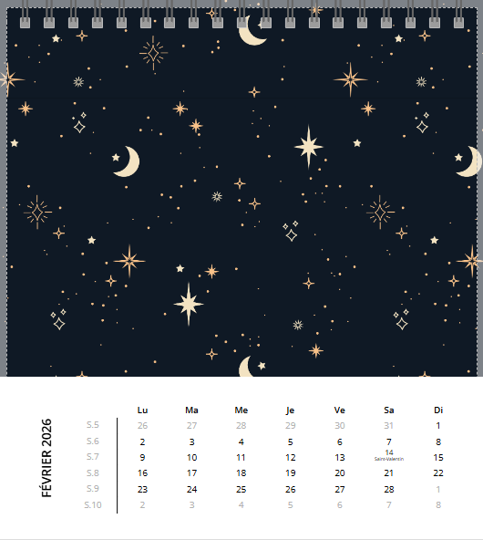 Avec son chevalet noir élégant, posez ce calendrier où il vous plaira : au bureau, sur la table de chevet… Grâce à sa large palette de fonds créatifs ou unis (il y en a pour tous les goûts.), créez un calendrier photo à votre image et gardez un œil sur les dates les plus importantes !