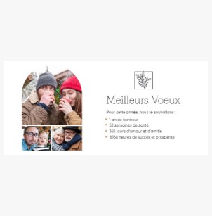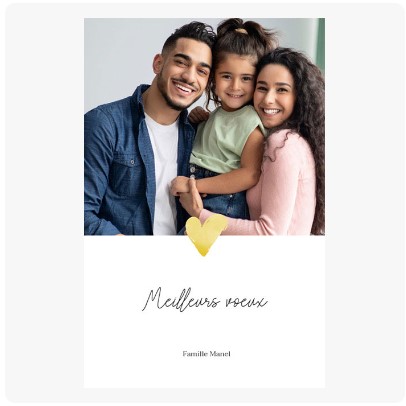 Pour les fêtes de fin d'année, envoyez des vœux créatifs et personnalisés ! Une photo en couple, en famille ou de beaux visuels, un petit texte et hop, c'est parti. En plus, nous vous offrons les enveloppes.